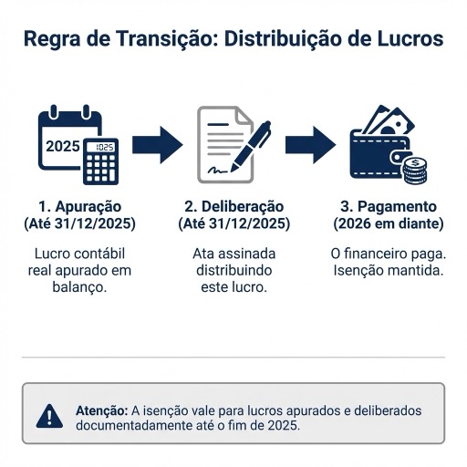 Em geral, a transição tenta evitar que lucros apurados até 2025 sejam tratados como se fossem lucros “novos” (2026+), desde que a empresa consiga demonstrar, com consistência, o encadeamento contábil e societário.