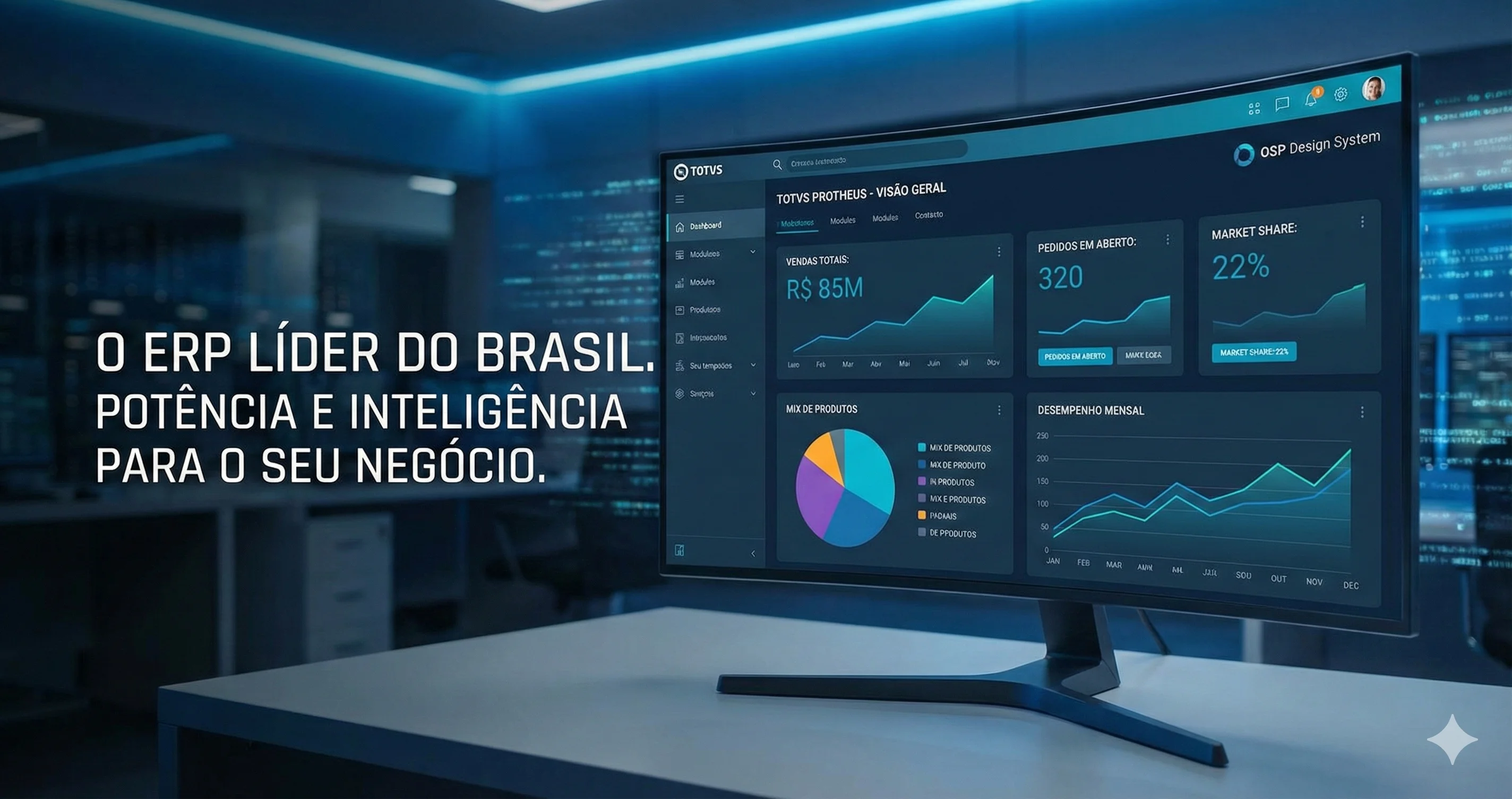 TOTVS Protheus (anteriormente conhecido como Microsiga desde 1983) é o ERP líder do Brasil para grandes empresas multi-site. Com mais de 40 anos de evolução, o sistema oferece arquitetura modular customizável ideal para indústria, logística e empresas com operações em múltiplos estados. Documentação técnica oficial TOTVS.